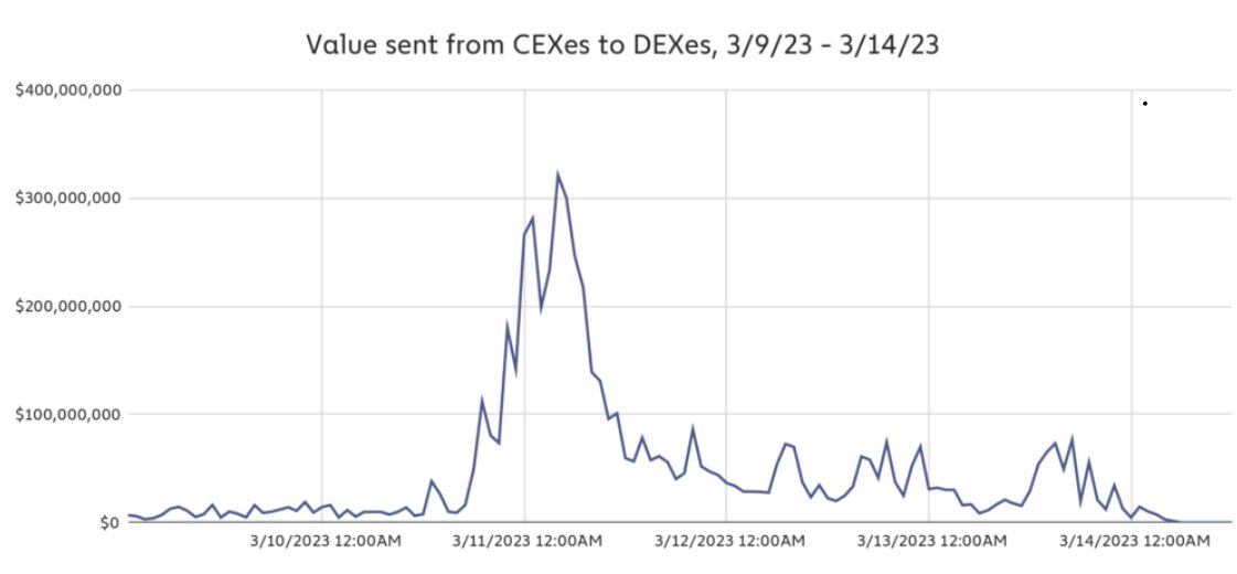 Средства, отправленные с CEX на DEX после краха SVB. Источник: Chainalysis